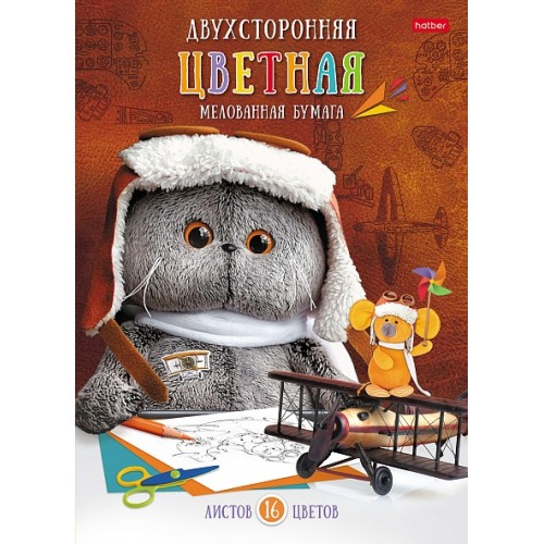 Бумага цветная двухсторонняя 16л 16 цв. А4ф -Кот Басик-