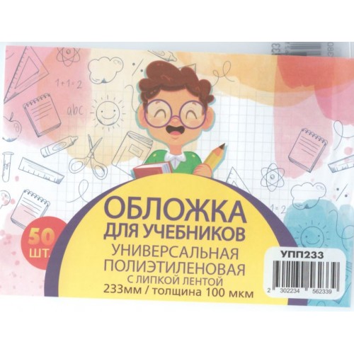 Обложка для учебника универсальная п/э с липкой лентой 100 мкм, высота 23,3 см