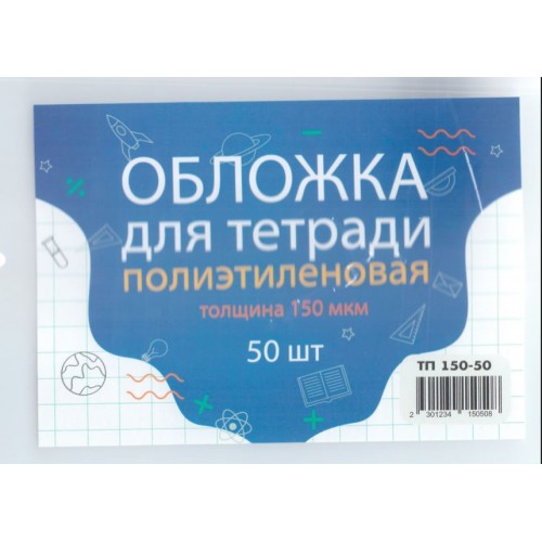 Обложка для тетради п/э, высота 21 см, ширина 34,5 см, 150 мкм (набор 10 штук)