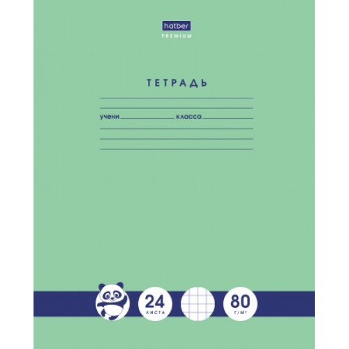 Тетрадь А5 формата 24 листа. Обложка- мелованный картон. Внутренний блок- офсет 80 гр., клетка, красные поля. Скрепление- скоба. Зеленые тетради классического дизайна, дополненные милым изображением панды, не оставят равнодушным ни одного школьника. Блок повышенной плотности и гладкости идеально подходит для всех видов пишущих принадлежностей, включая гелевые, капиллярные и перьевые ручки.