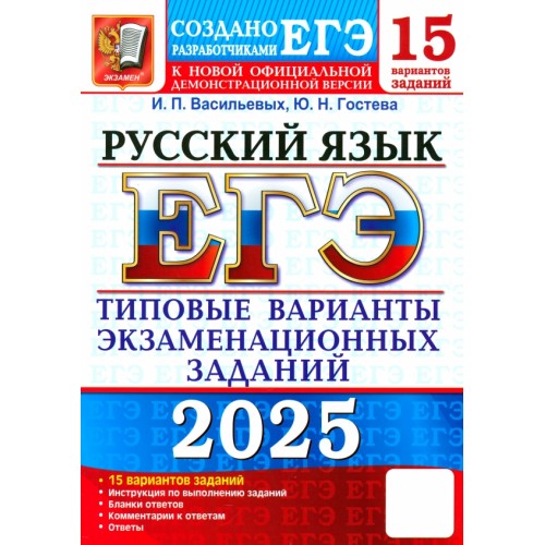 Гостева Ю.Н., Васильевых И.П. ЕГЭ-2025. Русский язык. 15 вариантов. Типовые варианты экзаменационных заданий